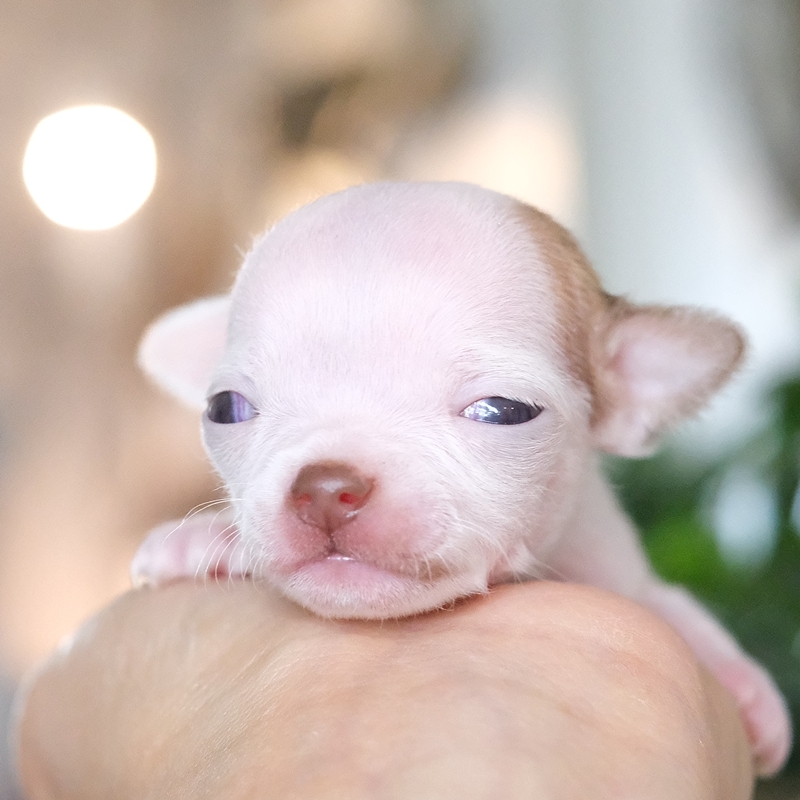 Chihuahua suczka– urocza urodzona 04.10'25 kolor biały. Drobniutka, śliczna dziewczynka. Do odbioru końcem grudnia. Aktualna waga:
